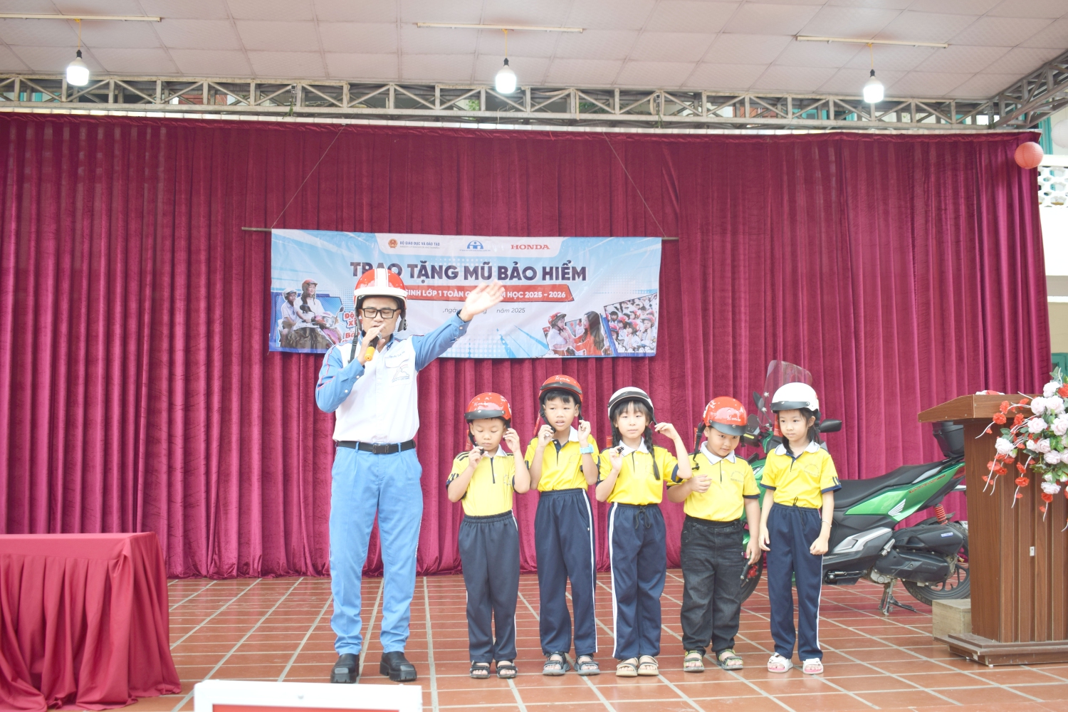 TRAO TẶNG MŨ BẢO HIỂM CHO HỌC SINH LỚP 1 NĂM HỌC 2025-2026 TẠI TRƯỜNG TIỂU HỌC HIM LAM