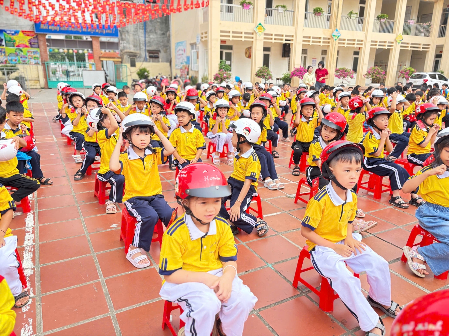 Chương trình diễn ra trong không khí vui tươi, phấn khởi, với sự tham dự của Ban đại diện cha mẹ học sinh, cùng toàn thể cán bộ, giáo viên, nhân viên và các em học sinh toàn trường. Những gương mặt rạng rỡ, háo hức của các em lớp 1 trong ngày đầu nhận chiếc mũ bảo hiểm đạt chuẩn là hình ảnh thật đẹp và đầy ý nghĩa.
