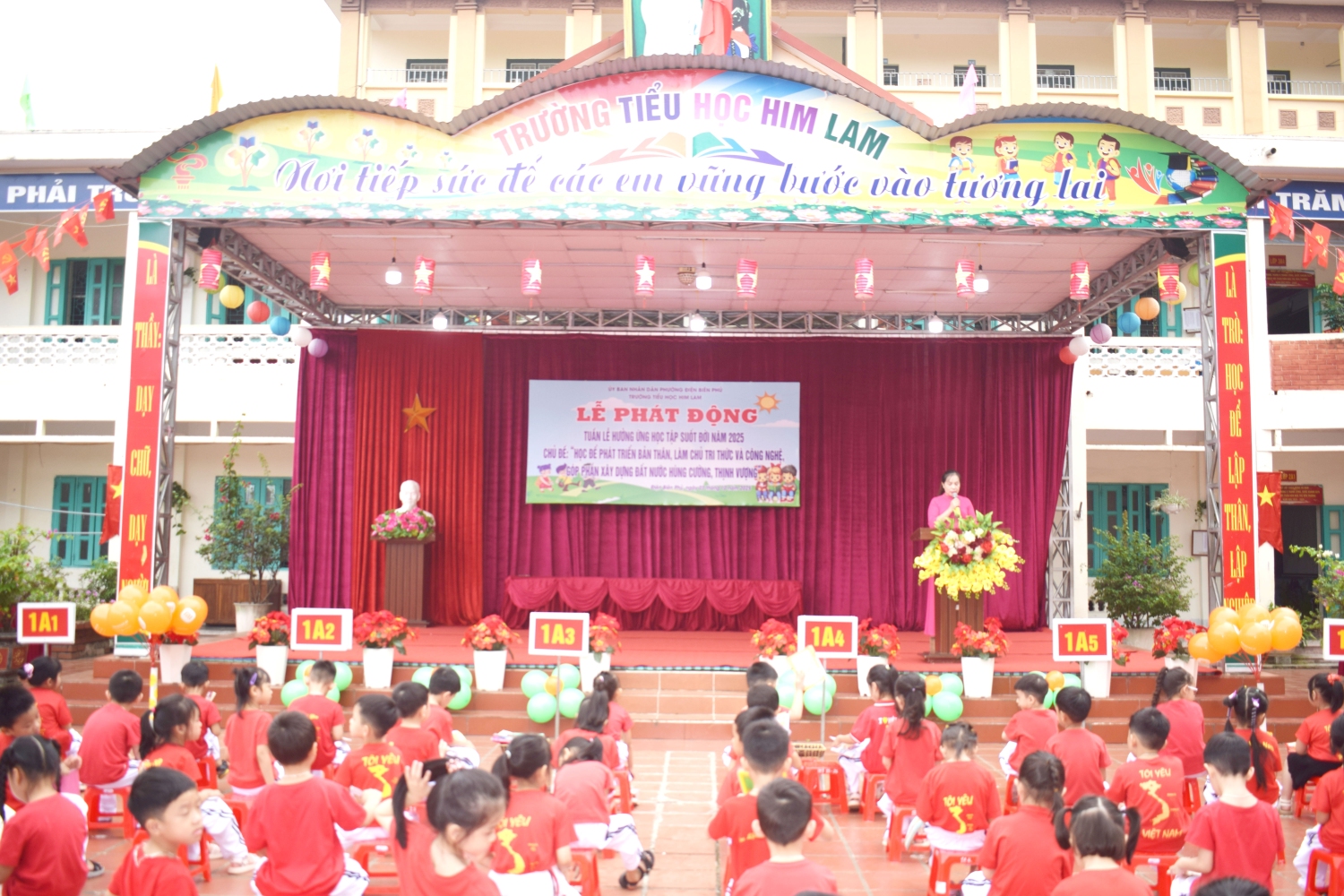 Thực hiện Kế hoạch số 52/KH-UBND ngày 25/9/2025 của UBND phường Điện Biên Phủ về việc tổ chức Tuần lễ hưởng ứng học tập suốt đời năm 2025, sáng ngày 03 tháng 10 năm 2025, Trường Tiểu học Him Lam long trọng tổ chức Lễ hưởng ứng Tuần lễ học tập suốt đời với chủ đề: “Học để phát triển bản thân, làm chủ tri thức và công nghệ, góp phần xây dựng đất nước hùng cường, thịnh vượng”.