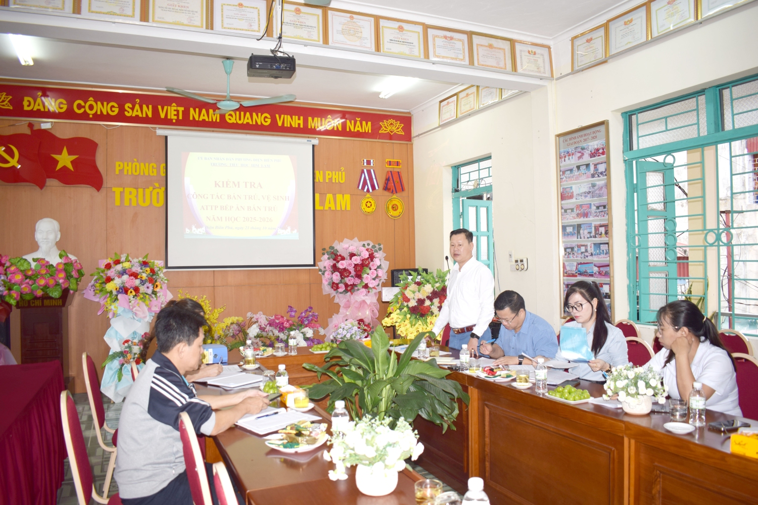 Kết luận tại buổi kiểm tra, đồng chí Cao Đại Dương - Tổ trưởng đã kết luận: Nhà trường đã có sự chuẩn bị chu đáo về hồ sơ pháp lý, lựa chọn nhà cung ứng thực phẩm, các điều kiện CSVC, trang thiết bị bếp đảm bảo, tổ chức bếp ăn tuân thủ tốt các quy định về chế biến, bảo quản thực phẩm, đảm bảo vệ sinh an toàn thực phẩm. Đồng chí cũng đã đề nghị nhà trường tiếp tục duy trì, phát huy hơn nữa trong việc đảm bảo an toàn thực phẩm bếp ăn bán trú cho học sinh.